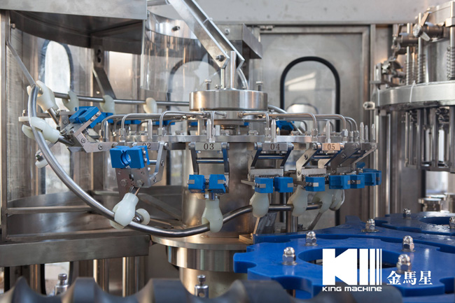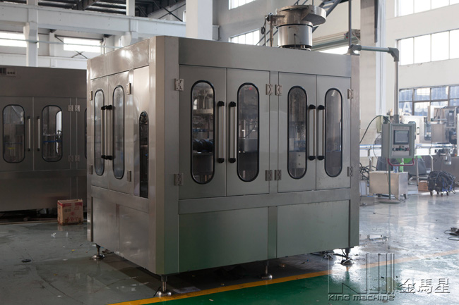 本設備集合了消毒、沖洗、灌裝和壓蓋,合四為一,能夠實現全自動桶裝水旋蓋。沖瓶機使用多種沖品液和消毒液,以保證獲得沖瓶和殺菌效果。消毒液可以循環使用,節省消耗。
